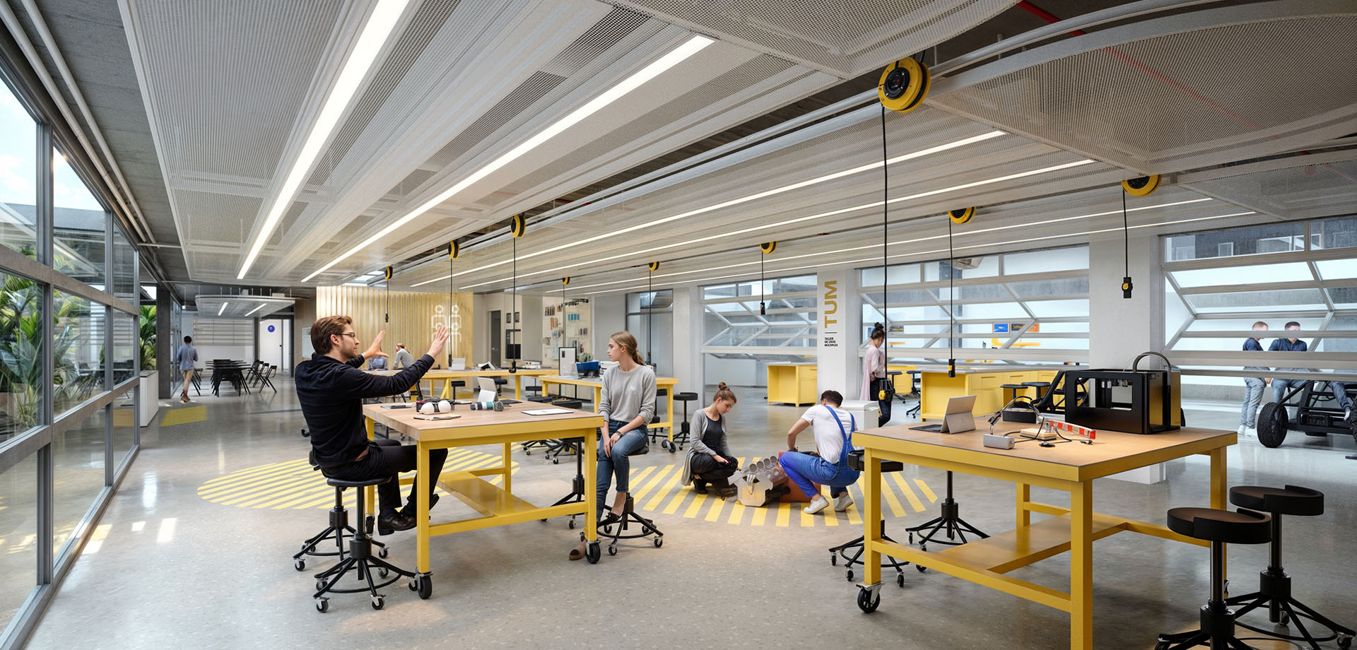 Reflejando un cambio pedagógico hacia el aprendizaje práctico y basado en proyectos, el Futuro Edificio contará con un área de 200m2 de “Maker Space” integrando espacios de creación, laboratorios de robótica y otros espacios especializados.