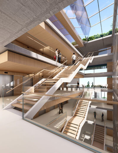 Con proyecto del prestigioso estudio de arquitectura MSGSSV e interiorismo de MIA Works, el edificio estará caracterizado por la integración vertical, mayor presencia de espacios verdes y de encuentro, identidad exterior e interior, flexibilidad en la infraestructura, sostenibilidad y facilidad de mantenimiento, todas características en línea con la idea de un edificio que habilita el aprendizaje en todo momento y en todo lugar.