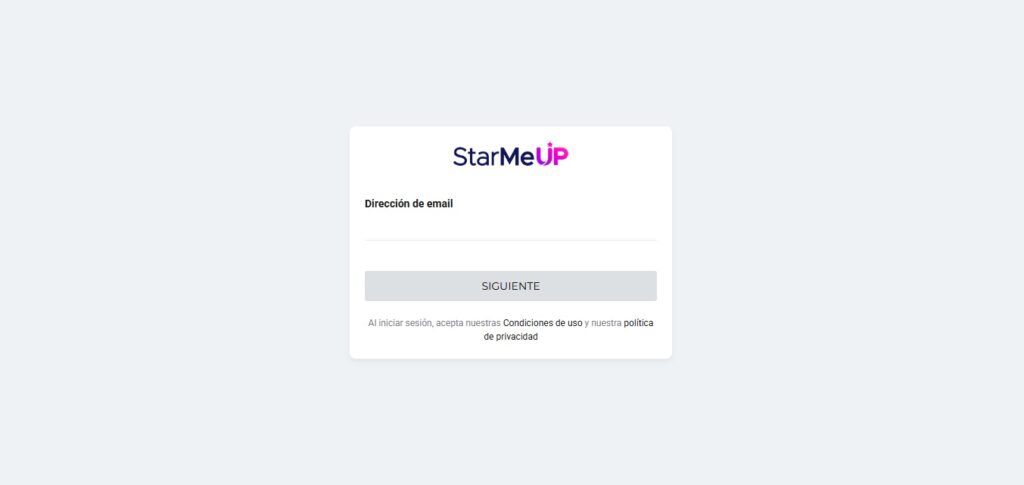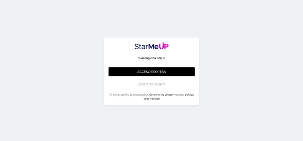 Cuando accedas al servicio de StarMeUP tenés que ingresar tu correo electrónico institucional.