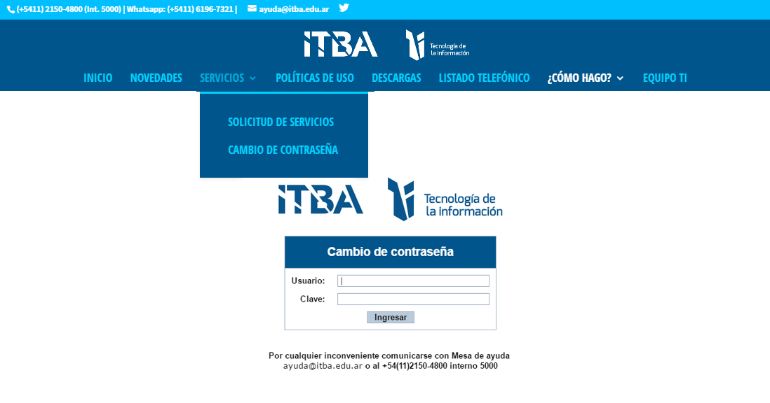 Para cambiar tu contraseña ingresas a la intranet de TI > Servicios > Cambio de contraseña