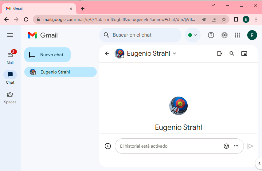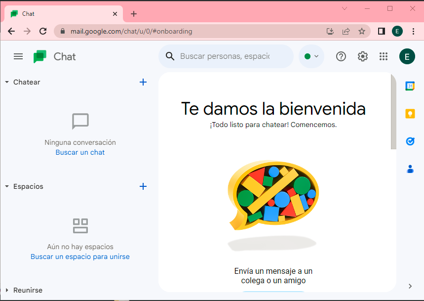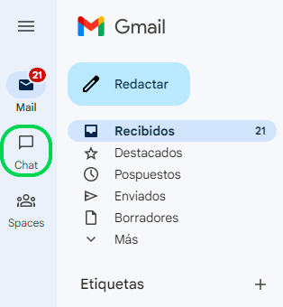 - Una vez iniciada la sesión google, podemos acceder al chat de google de varias formas, la primera es la más común, entrando a la cuenta de gmail y veremos el chat sobre el margen izquierdo.