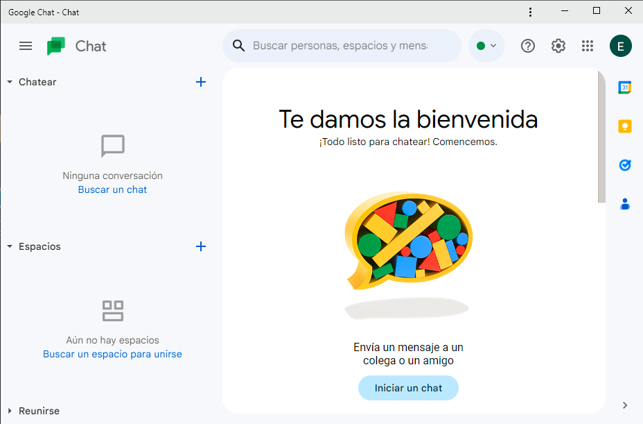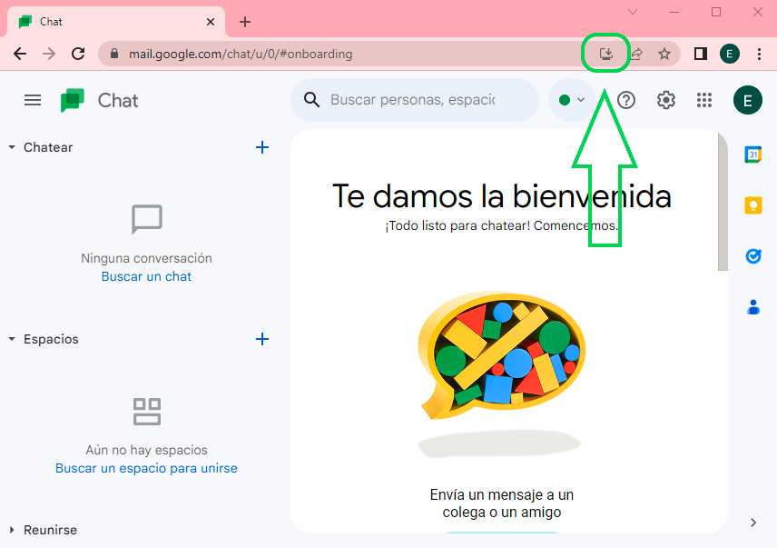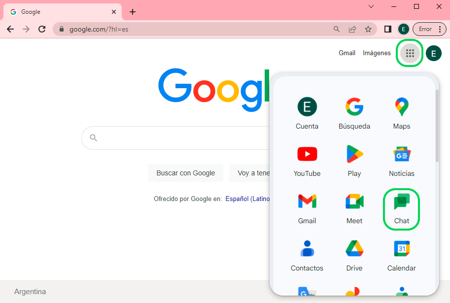 - Se accede a las aplicaciones de google Workspace y se selecciona el acceso a Chat (puede estar más abajo en el listado)