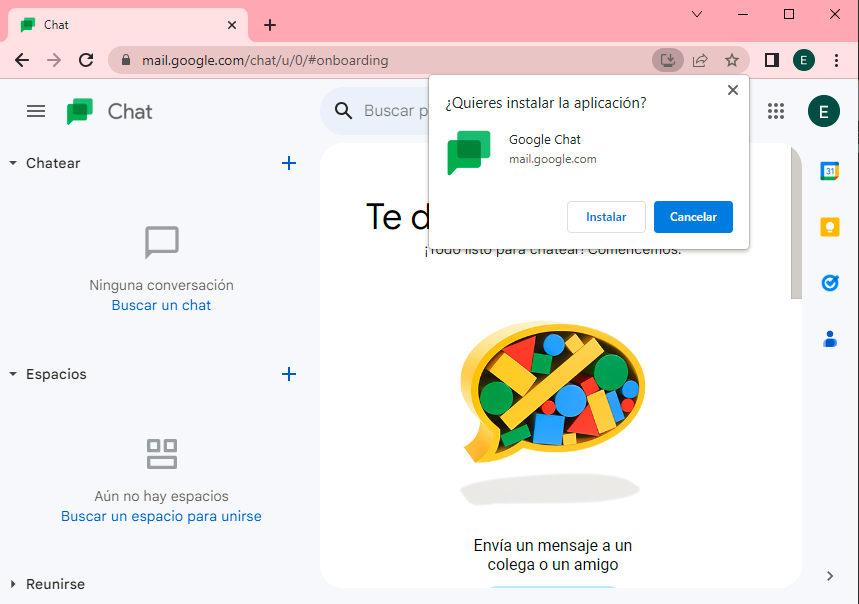 - Al darle instalar se abrirá automáticamente una ventana independiente al navegador, la cual se puede anclar en en el inicio o en el menú: