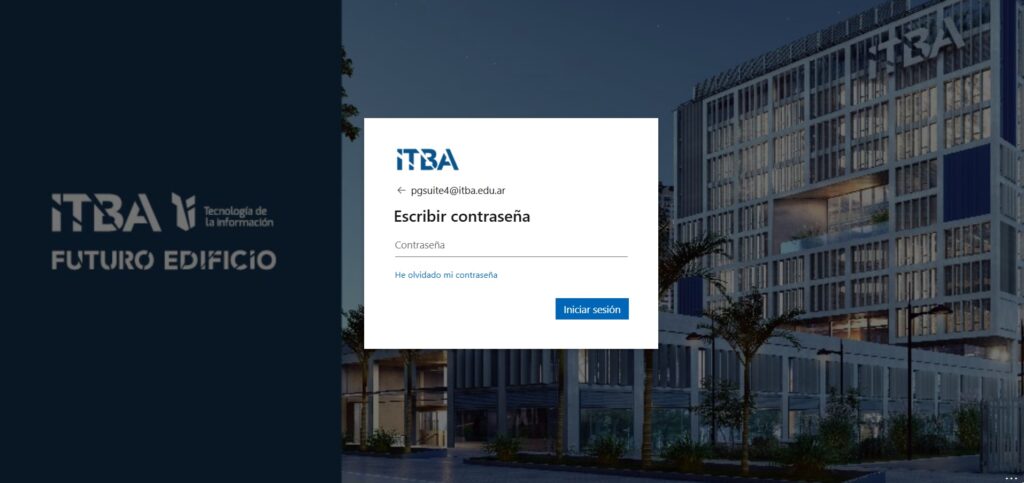 Cuando accedas por primeras vez a algún servicio en ITBA y tengas activo el Single Sign On se te pedirá que realices la configuración de la autenticación multifactor (MFA). Para comenzar primero tenés que acceder al formulario de inicio de sesión ITBA e ingresar tu correo electrónico.
