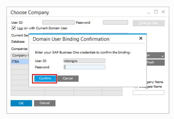 En “Choose Company” chequear que esté seleccionada la base de datos “ITBA_PROD”, luego OK