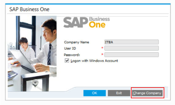 Ingresar a SAP Bussiness One y entrar a “Change Company”