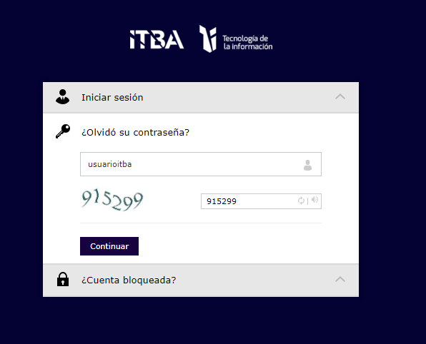Ingresar a micuenta.itba.edu.ar e intruducir el nombre de usuario ITBA en ¿olvido su contraseña?, luego introducir el captcha.