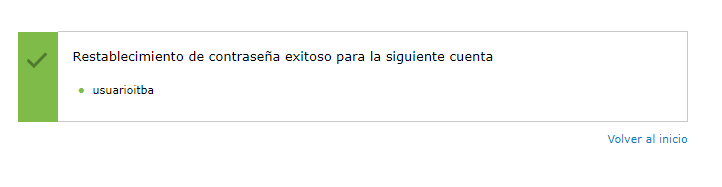 Si el restablecimiento de contraseña fue exitoso nos aparecerá el siguiente mensaje.