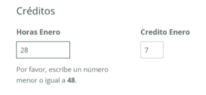 - Se deben cargar las horas en el campo del mes (Horas Enero, por ejemplo) y los créditos serán calculados automáticamente