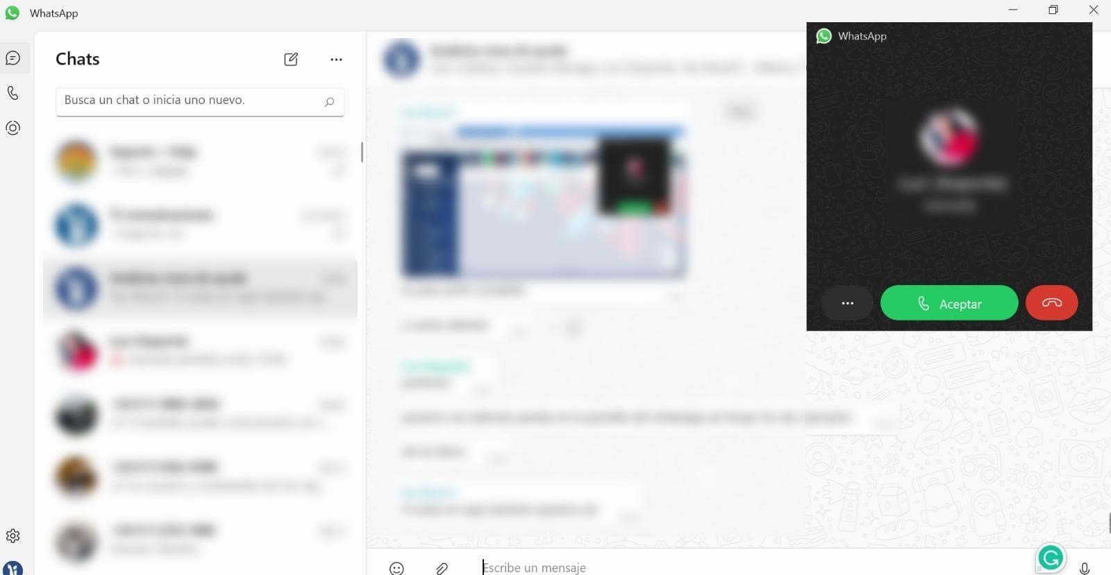 La llamada aparece como una ventana emergente de la siguiente manera, estando en la ventana del whatsapp o en otra pestaña