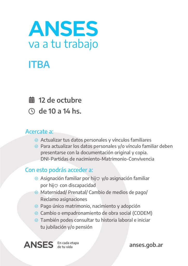 El 12 de octubre de 10 a 14hs personal de Anses brindará atención en la Sede Rectorado.