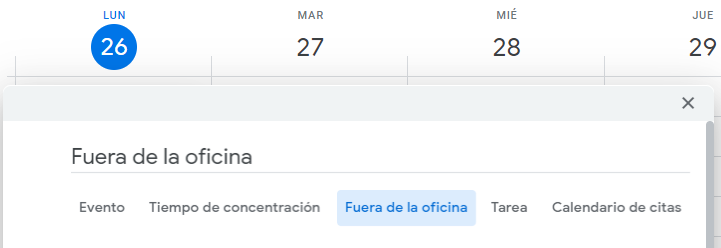- Seleccionar la opción fuera de oficina