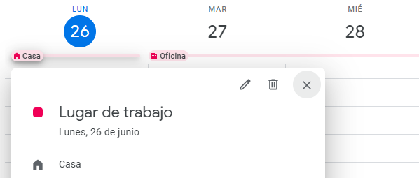Tambien podrás modificar tu lugar de trabajo directamente desde calendar: