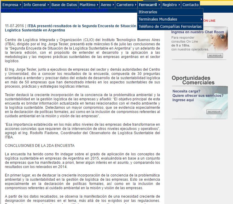 Portal Transportando.net 11 de julio de 2016 Presentación de los resultados de la Segunda Encuesta de Situación de la Logística Sustentable en Argentina