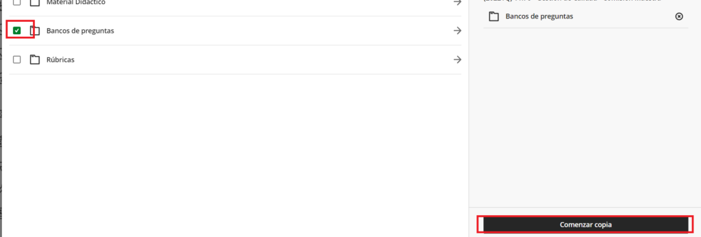 Paso 3: Para finalizar se realiza el check en el contenido a copiar y por último se pulsa Comenzar Copia.