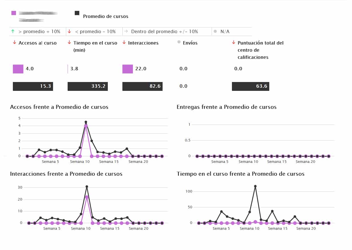 Podes ver como es tu actividad en Campus respecto al promedio de tus compañeros de curso, así como la comparación con el promedio de calificaciones calificaciones