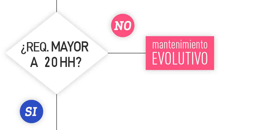Todo requerimiento cuyo esfuerzo sea mayor a 20 horas será tratado como proyecto, los menores se los considerará mantenimiento evolutivo.