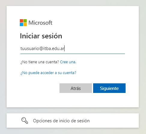 - ingresá a https://www.microsoft365.com/ Con tu correo electrónico y contraseña ITBA